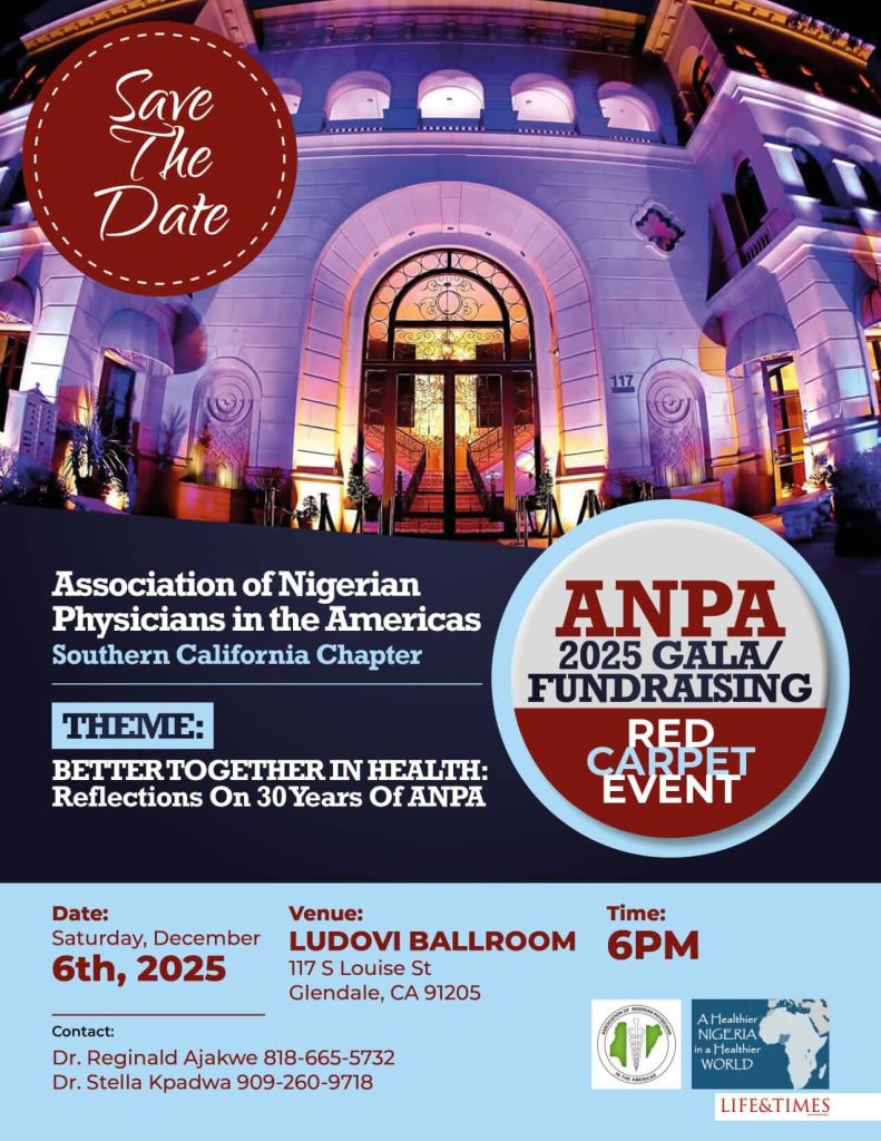 This year’s fundraiser, themed Better Together in Health: Reflections of 30 Years of ANPA, not only supports these critical initiatives but also highlights our enduring legacy through a special showcase of ANPA’s history. The evening will also honor four outstanding members of the Southern California Nigerian community for their excellence in Cuisine, Fashion, Healthcare, and Entertainment.